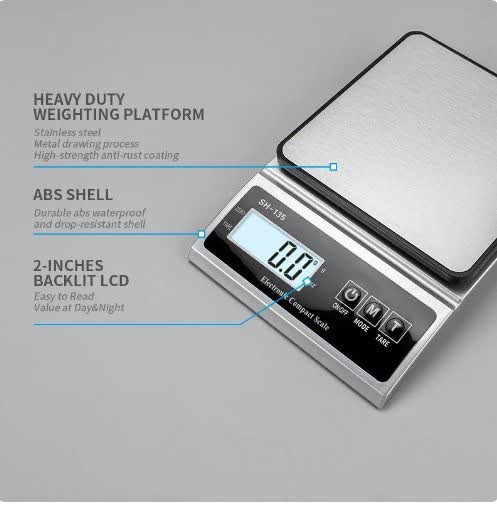 ترازوی SH-135 یک ترازو آشپزخانه دیجیتالی پیشرفته و دقیق است که برای استفاده در صنعت غذایی و مصارف روزمره طراحی شده است. این ترازو با دقت بالا و کیفیت ساخت ممتاز، قادر است وزنهای مختلف را با صحت و اطمینان کامل اندازهگیری کند.