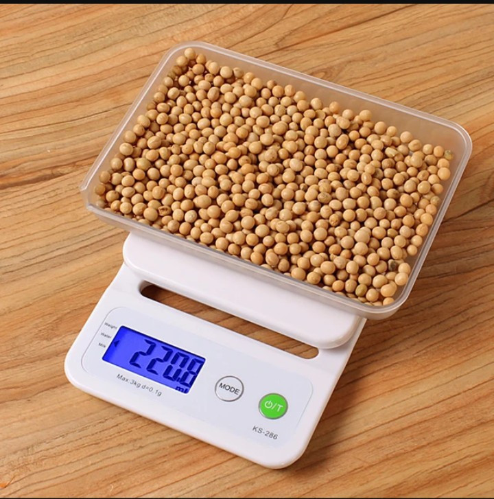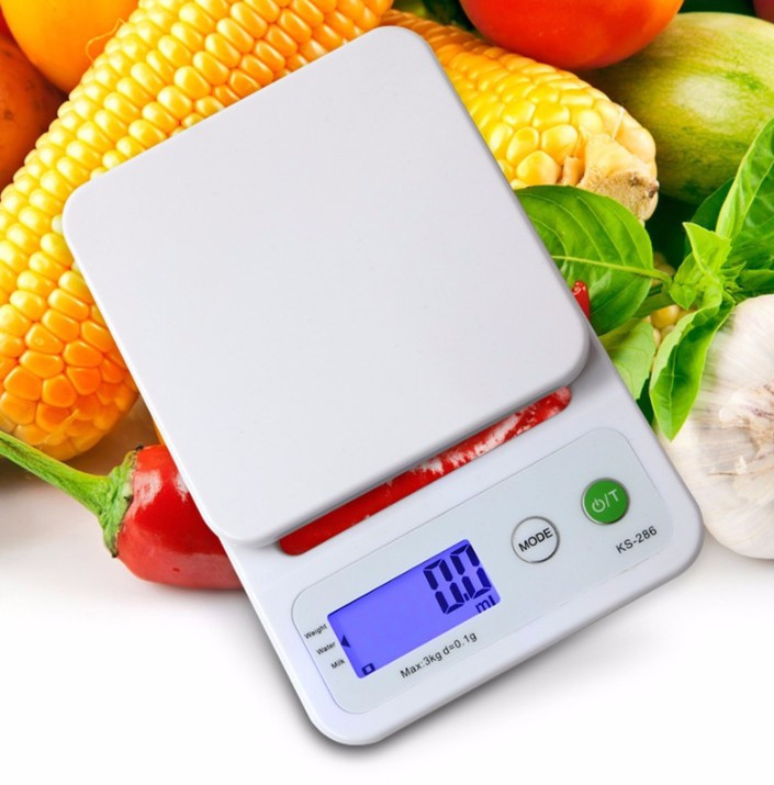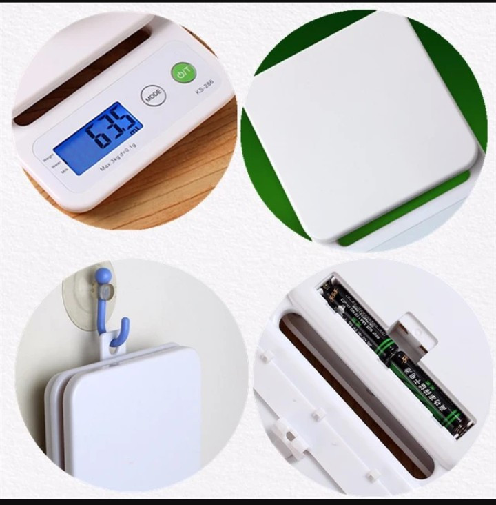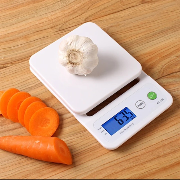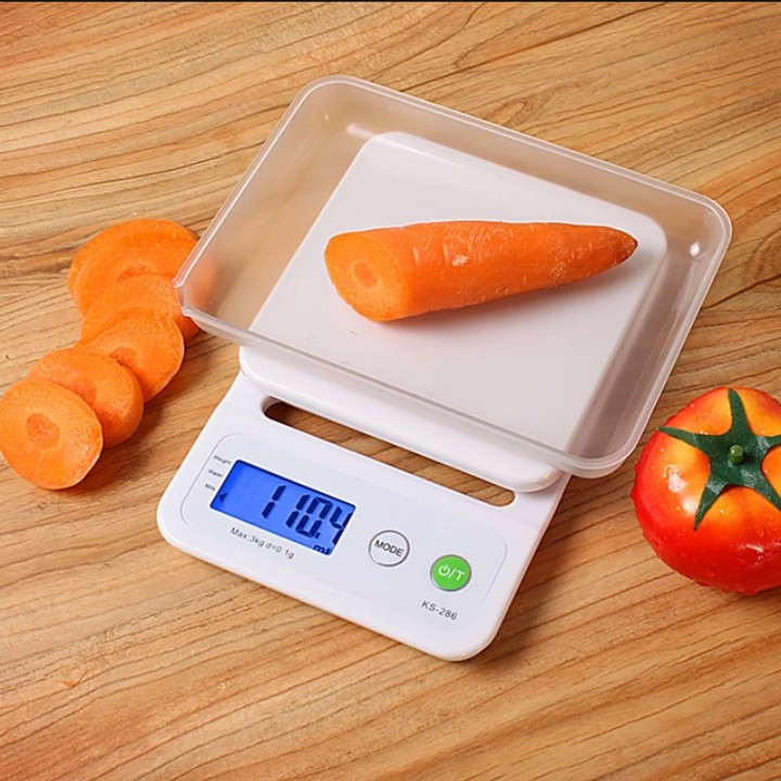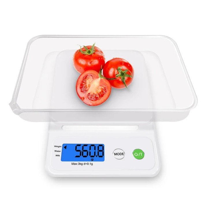 ترازو آشپزخانه ۵ کیلوگرمی دقت یک گرم دارای قابلیت صفر کردن وزن ، صفحه نمایش با نور آبی دارای ظرف مخصوص توزین