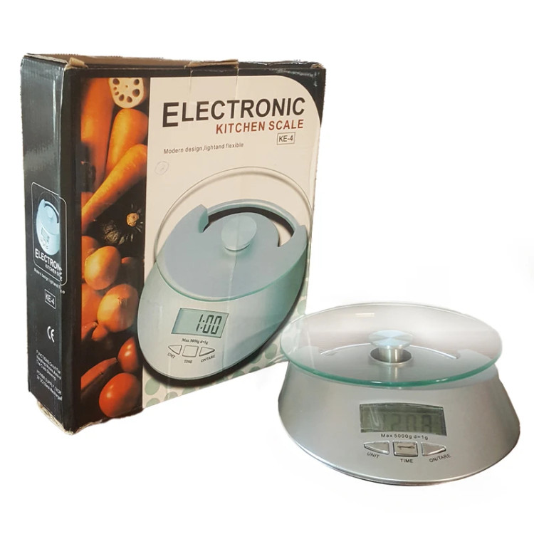ترازو آشپزخانه 5 کیلوگرمی KE-4 با دقت یک گرم مخصوص هر خانه و آشپزخانه، دارای دکمه صفر کردن وزن ظرف (پارسنگ) دارای واحد گرم و اونس و دو عدد باتری و مصرف بهینه می باشد .این ترازو دقیق ، شیک و با کارایی آسان
