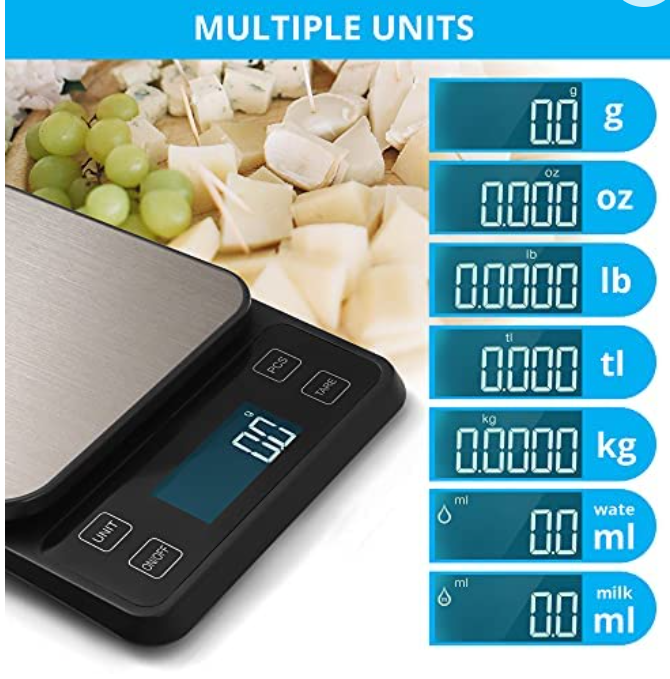 گرم (g)، میلیلیتر آب، میلیلیتر شیر، اونس (oz) و واحدهای دیگر